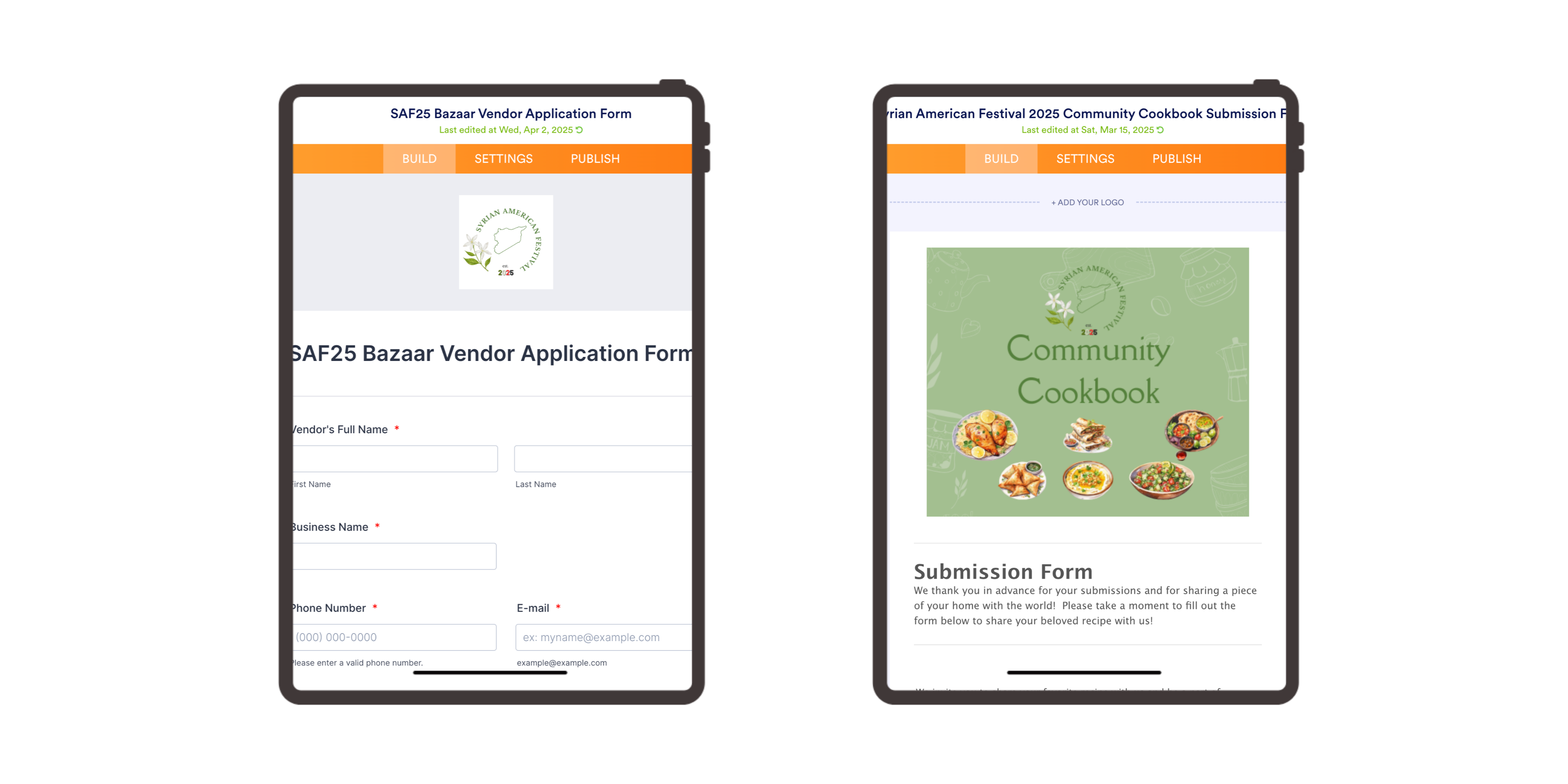 Jotform Creation for Bazaar Vendors and Cookbook Contributors